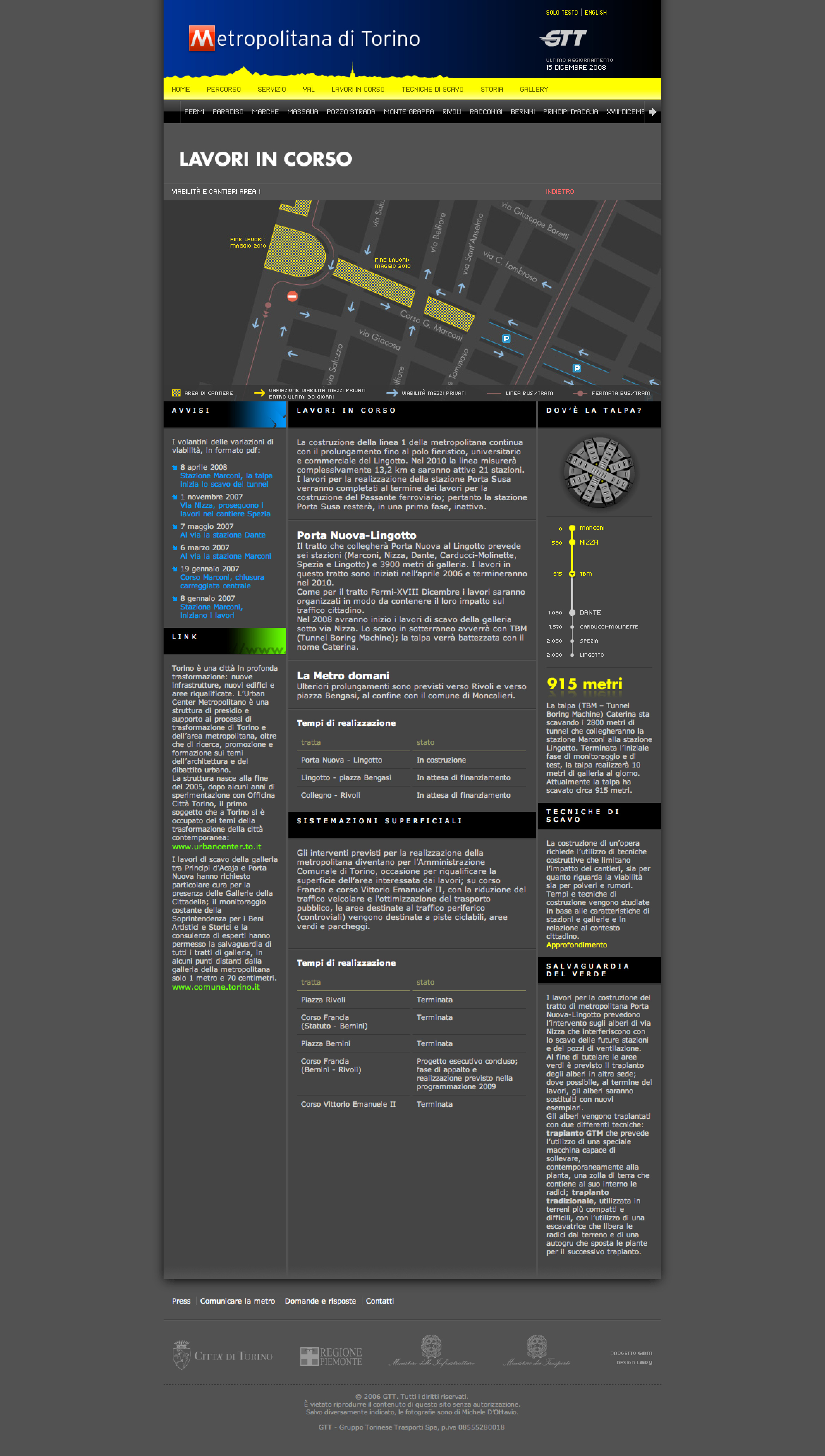 In February 2006 as the XX Olympic Winter Games were taking place, Turin’s first metro line opened. GTT requested a new website which would enhance the technological aspects and explain its use to Turin’s citizens and to all world visitors with service info, building sites news and a highly personalized design. The website has been awarded the “Site of the year” at Premio Web Italia 2006.